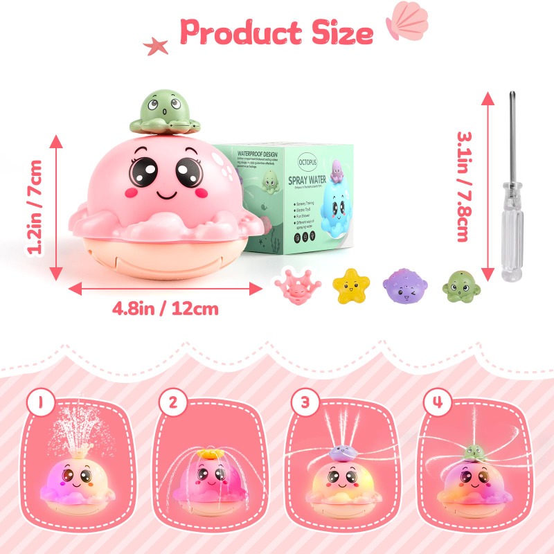Just place the cute octopus in water and watch it automatically spray a gentle fountain while flashing colorful lights—no switch needed. Floating fun that keeps little ones happily engaged from start to finish.
