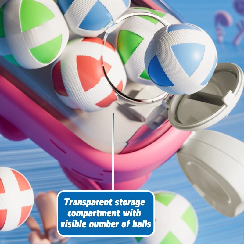 The built-in transparent ball compartment lets kids clearly see how many balls are left, making it easy to reload and keep the game going without interruptions. It also keeps all the balls neatly stored in one place when playtime is over.