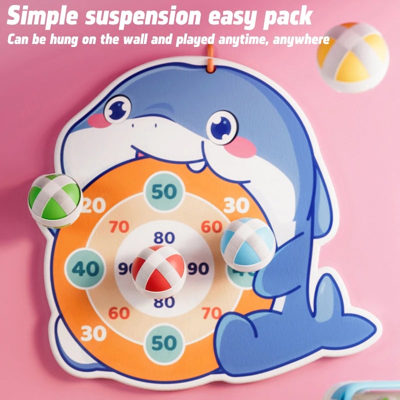 The adorable whale target board comes with a hanging loop so it can be easily mounted on walls, doors or hooks. The printed score zones turn every shot into a fun counting and aiming game that builds hand-eye coordination.